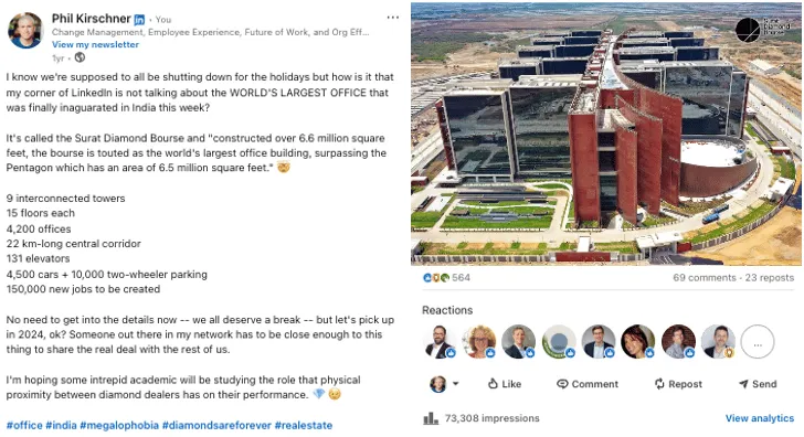 The diamond traders who were supposed to flock to Surat never had a chance to vote with their feet before the massive infrastructure was complete. WeWork Phil would have asked, “Is there a way to try this out with a flexible workspace before fully committing?”